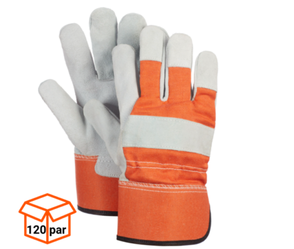 • Wykonane z dwoiny bydlęcej część chwytna z jednego kawałka skóry z podszewką bawełnianą, część grzbietowa z tkaniny