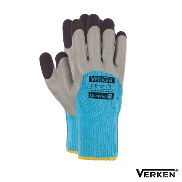 - Wykonane z przędzy poliestrowej, podwójnie powleczone gładkim lateksem w kolorze szarym oraz czarnym ryflowanym na końcach palców