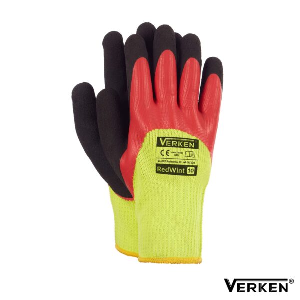 - Wykonane z przędzy poliestrowej, podwójnie powleczone gładkim lateksem w kolorze czerwonym oraz czarnym ryflowanym na części chwytnej